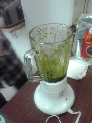 2、ミキサーに1と水を少し入れ、混ぜる。