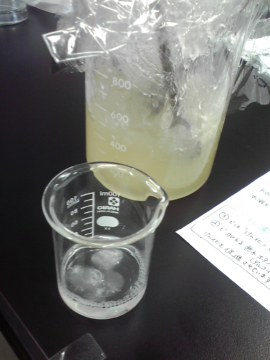 | 9、ベースを精製水に溶かし、クエン酸で中和(分量忘れました) ↓ |